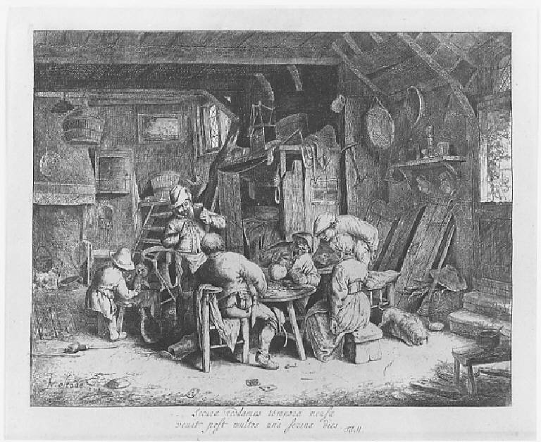 - ISCRIZIONI nell'inciso, nell'angolo inferiore sinistro - AV. OSTADE - Tibullo - corsivo - latino