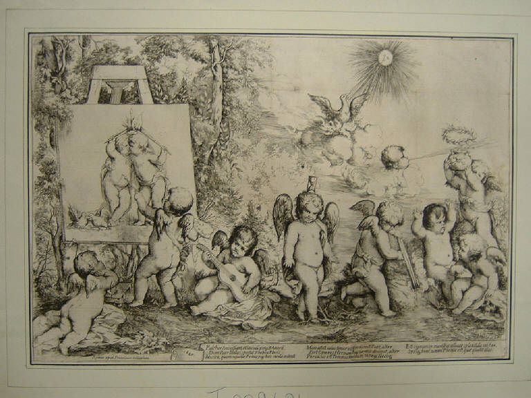 DIVINITA' MINORI: AMORINI. PAESAGGIO. SIMBOLI. OGGETTI: FARETRA; ANFORA; QUADRO; FIACCOLA; CLESSIDRA. STRUMENTI MUSICALI: CHITARRA. PAESAGGIO. ANIMALI: UCCELLI