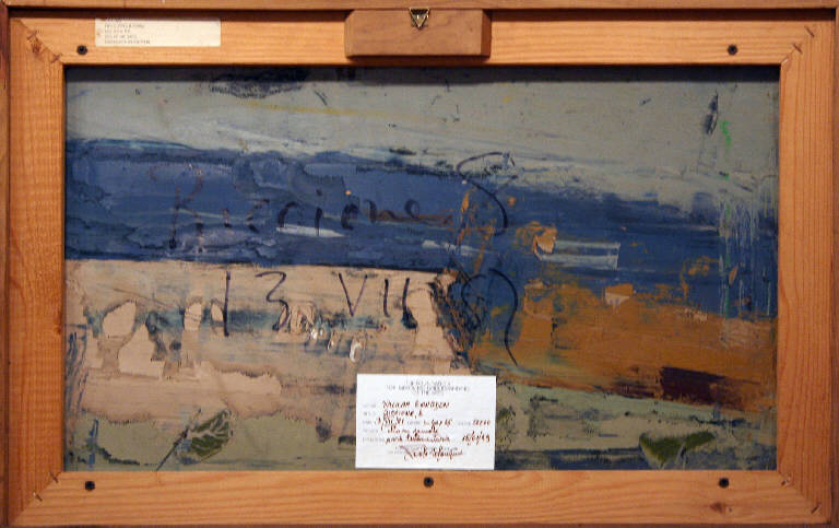 - ISCRIZIONI etichetta adesiva retro cornice in alto al centro - 561.00/ RICCIONE 8 1982/ cm 40 x 65/ olio su pannello/ Collezione dell'artista - Congdon Grosvenor, William - corsivo - a penna/ a stampa -