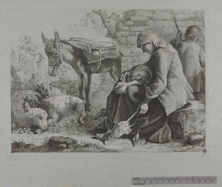 - NOTIZIE STORICO CRITICHE L'incisione probabilmente deriva da un disegno del Londonio non reperito (cfr. Scola 1994, p. 29). La figura del pastorello in piedi è ripresa in controparte dall'incisione di Londonio "Pastorello, asino, pecore e capre" del 1759 (Scola 1994, p. 28, n. 14)