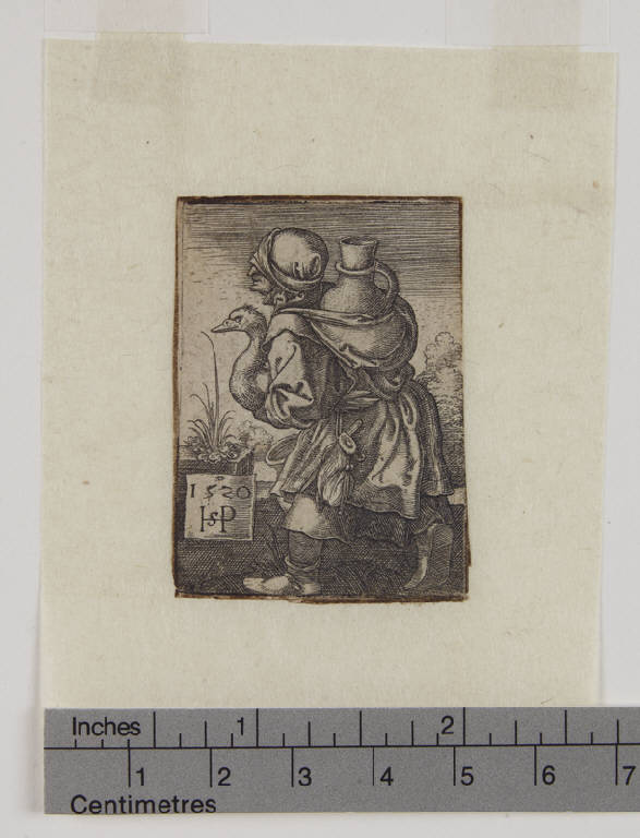 Figure: contadina. Oggetti: brocca. Animali: oca