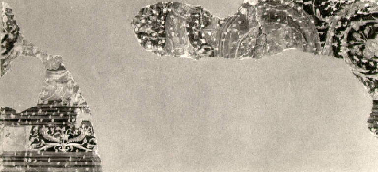 Tondo con ritratto di giovane donna di profilo a destra (conservato parzialmente); ai lati volute vegetali
