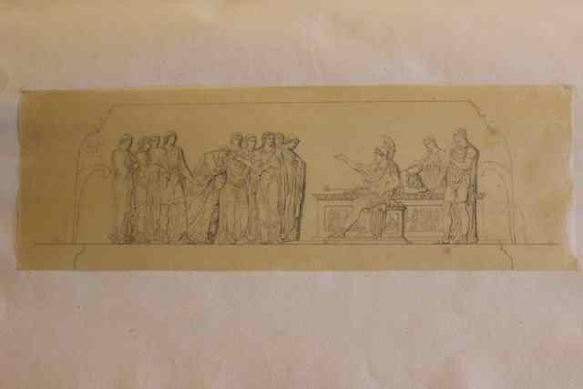 Studio per scena storica (Istituzione della Corona Ferrea). A penna e inchiostro nero su carta da lucido. Riquadrato a penna e inchiostro nero