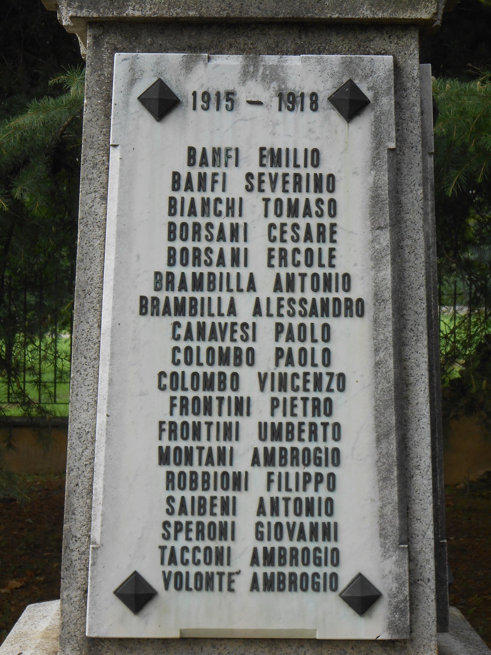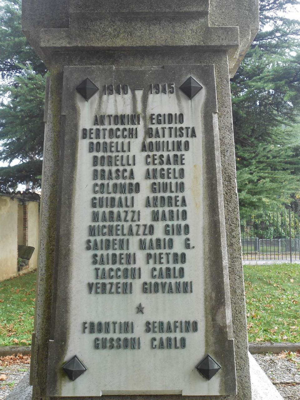 - ISCRIZIONI cippo, lato frontale - LA PATRIA/ COLSE LA LORO GIOVINEZZA/ IL CIELO/ CUSTODISCE IL LORO SPIRITO/ CARBONATE/ CONSERVA - RICONOSCENTE-/ LA LORO MEMORIA - capitale -