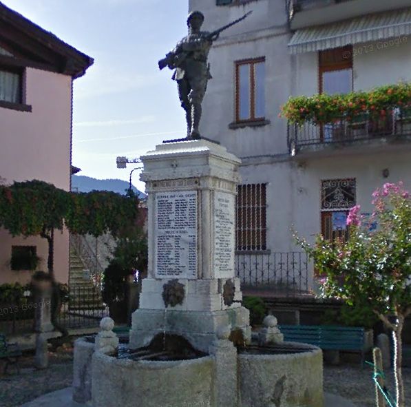 - NOTIZIE STORICO CRITICHE La statua è da attribuire a Gunella, scultore attivo in Valtellina. E' probabile che a seguito del secondo conflitto mondiale siano state rifatte tutte le lapidi con i nominativi, in quanto presentato tutte le medesime caratteristiche