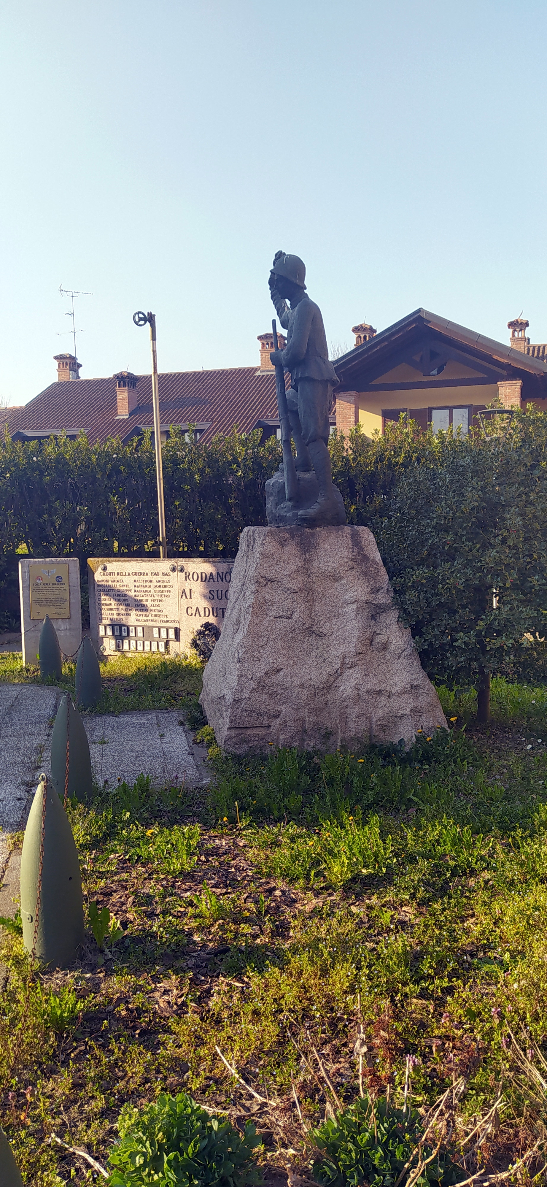 - ISCRIZIONI sulla targa posta al centro - RODANO / AI SUOI / CADUTI - capitale - a caratteri applicati in bronzo -