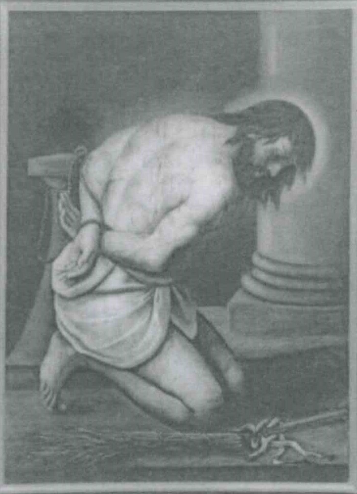Gesù inginocchiato e legato alla colonna della fustigazione