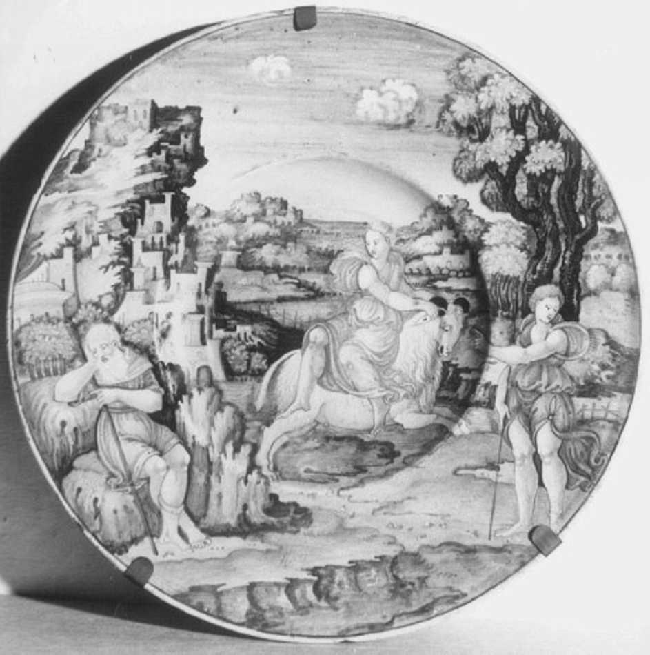 Tagliere dipinto con scena mitologica da identificare probabilmente con il ratto di Europa
