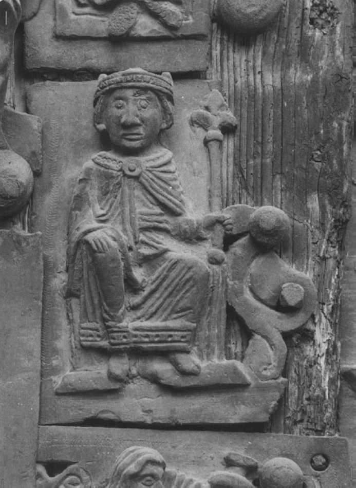 Figure maschili: re. Oggetti: corona; scettro; trono
