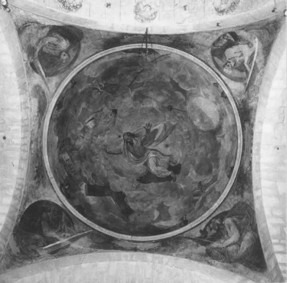 - NOTIZIE STORICO CRITICHE Connesso con la ristrutturazione del presbiterio operata nel XVI se- colo (costruzione della cupola : 1543) - Rimaneggiato nei secoli successivi, anche con interventi di Santo Prunati - La composizione, originale nel suo insieme, pu. essere confrontata con gli affreschi del coro di S. Marziale a Breonio