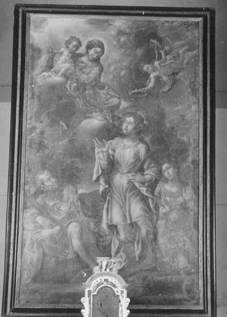 Personaggi: Madonna; Bambino; Santi Vito; San Modesto; Santa Crescenzia. Figure: Cherubini; angelo. Paesaggi