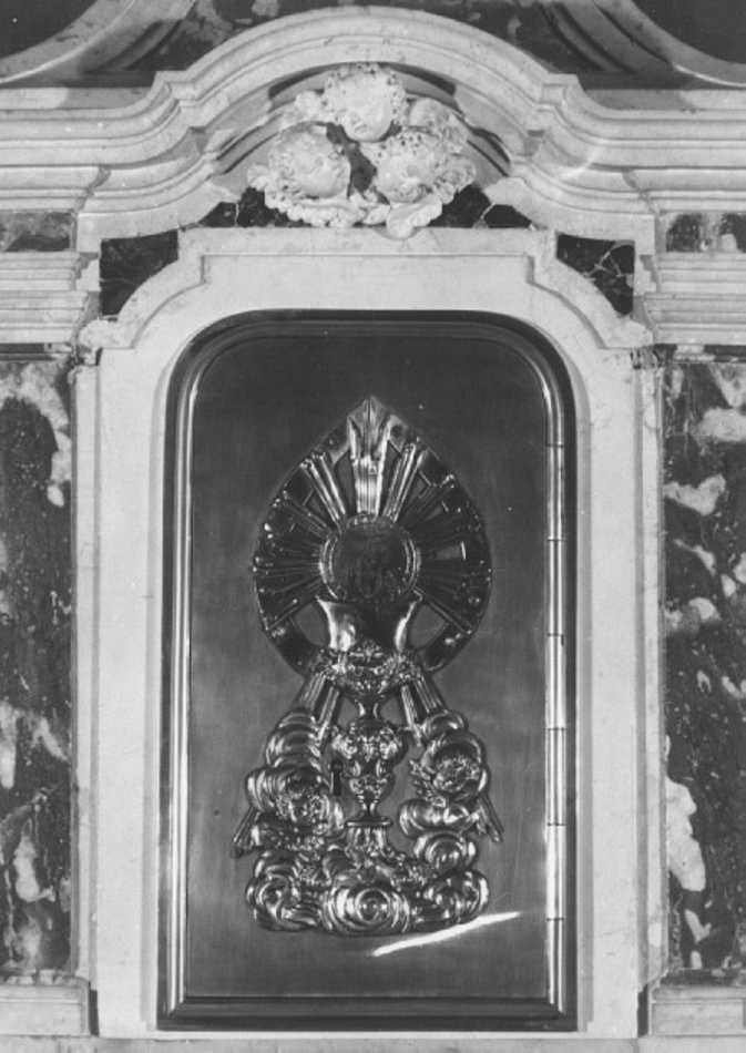 Sportello di tabernacolo con ostensorio e testine di cherubini