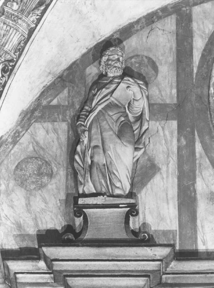 - NOTIZIE STORICO CRITICHE Secondo il Giro (1869) le statue sono da attribuire a tal Petrello del Cristo non meglio identificato secondo il Rognini (1971 - 72) invece, documenti d'archivio proverebbero che la loro esecuzione si deve ad Augusto Festa scultore che le avrebbe realizzate nel 1682 circa quando venne costruita la cappella del Beato Bernardo Tolomei -