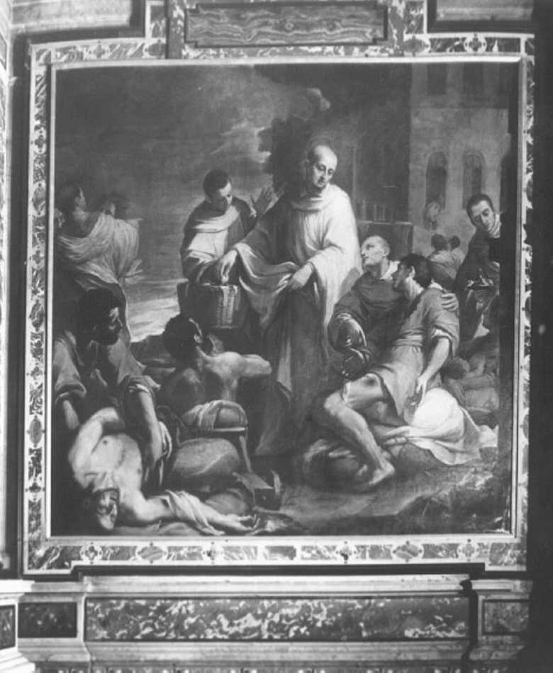 Soggetti sacri: miracoli. Personaggi: Beato Bernardo Tolomei. Figure: monaci appestati