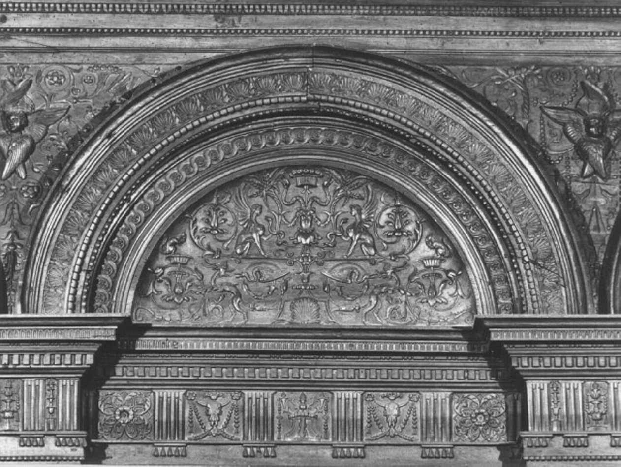 Decorazioni: conchiglie; dentelli; ovoli; doppio nastro intrecciato; rosette; girali. Animali fantastici