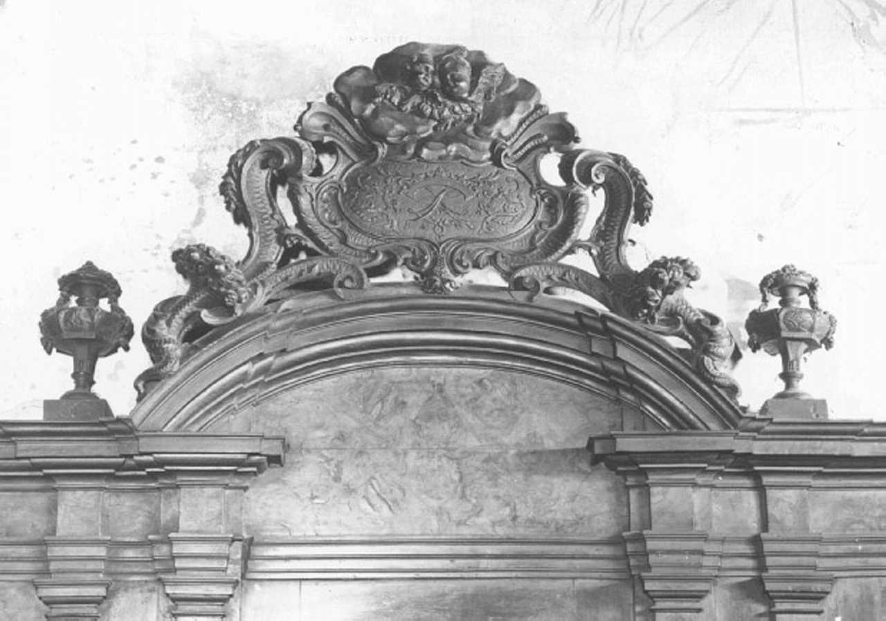 Cartiglio con motivi fitomorfi, vasi, teste di cherubino