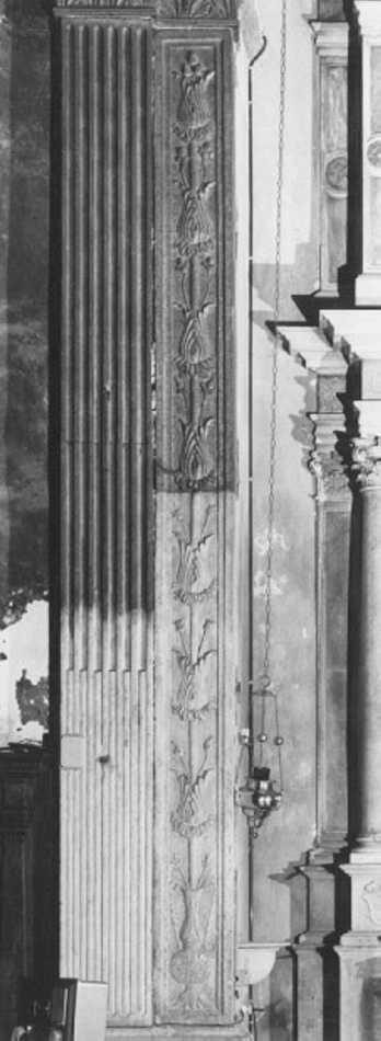 - NOTIZIE STORICO CRITICHE Un documento recentemente pubblicato prova che la cappella era gia' eretta nel 1468, e che vi lavorava un Gregorio lapicida, identifi- cabile con Gregorio Panteo. Gia' Zannandreis attribuiva al Panteo i rilievi della cornice, ma e' piu' probabile che l'artigiano nominato nel documento lavorasse per la dotazione dell'interno della cappella. Infatti la cornice esterna appare coeva alla decorazione pittorica, e databile quindi verso la fine del secolo. La decorazione scultorea presenta un carattere rinascimentale ancora incerto, segnato da re- taggi tardogotici e, nella statuaria, da influssi d'Oltralpe. L'unita' stilistica che caratterizza la decorazione dei pilastri con candelabre delle tre cappelle della parete sinistra permette di attribuirle alla stessa bottega di lapicidi. In particolare, il motivo decorativo delle candelabre e' identico a quello del portale della scuola materna Caritas in via Cantarane a Verona