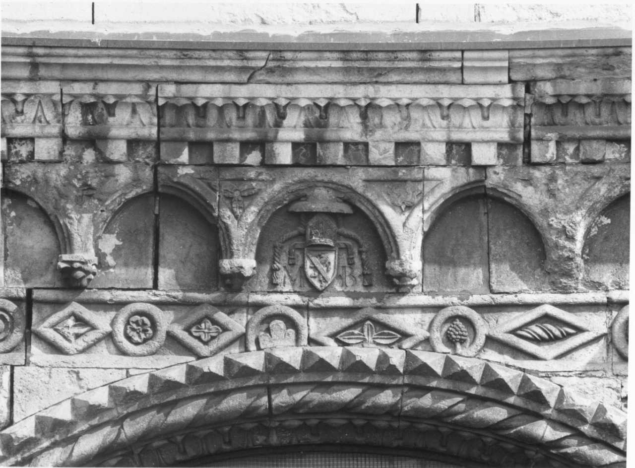 - NOTIZIE STORICO CRITICHE Le iniziali incise ai lati dello scudo si riferiscono al committente , cardinale Marco Barbo. Il nome dello scultore e dell'autore del d ìsegno sono riferiti dal Mantese (1964), e desunti dalla documentazi one relativa ai lavori nella chiesa, che riporta anche notizie relat ive al pagamento dell'opera. Prima dell'imbiancatura eseguita nel 18 17, esisteva uno stemma analogo nella controfacciata della Cattedral e (Magrini, 1848)