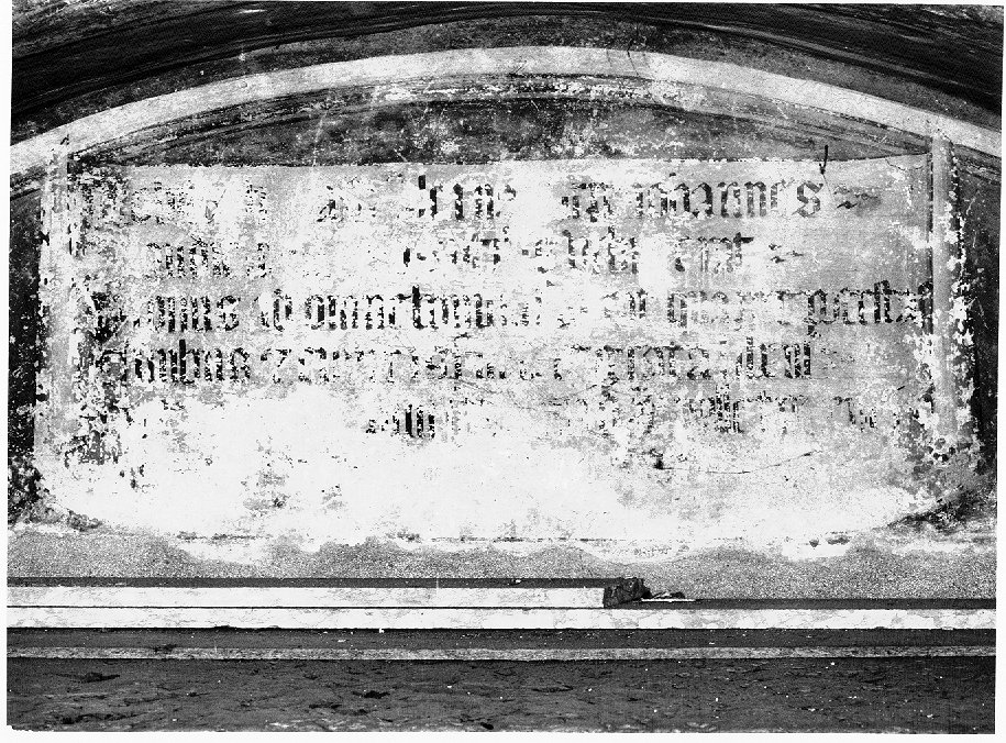 - ISCRIZIONI entro nicchia ad arco ribassato - .. IOHANNES / .. / PRONUS .. OMNE BONU .. / .. UBUS . - caratteri gotici - a pennello - latino volgare