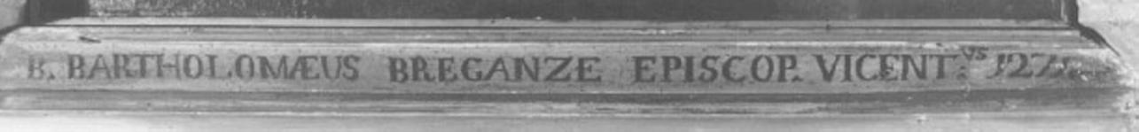 - ISCRIZIONI B. BARTHOLOMAEUS BREGANZE EPISCOP. VICENT:VS 1271 - lettere capitali - a pennello -