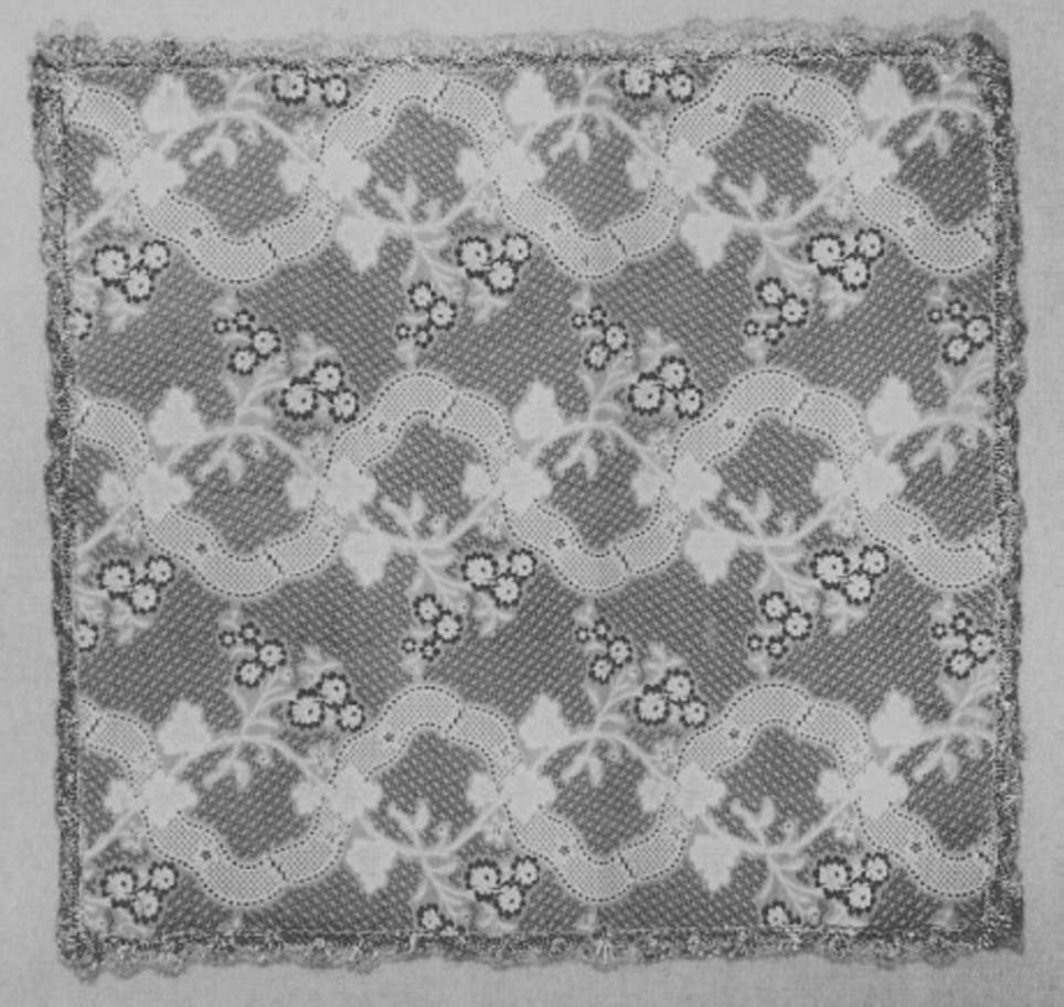Tessuto: fondo bianco; motivi ottenuti in fili di seta policromi. Gallone: a fuselli in argento lamellare. Fodera: tela di cotone rossa. Decorazione: motivo a meandro