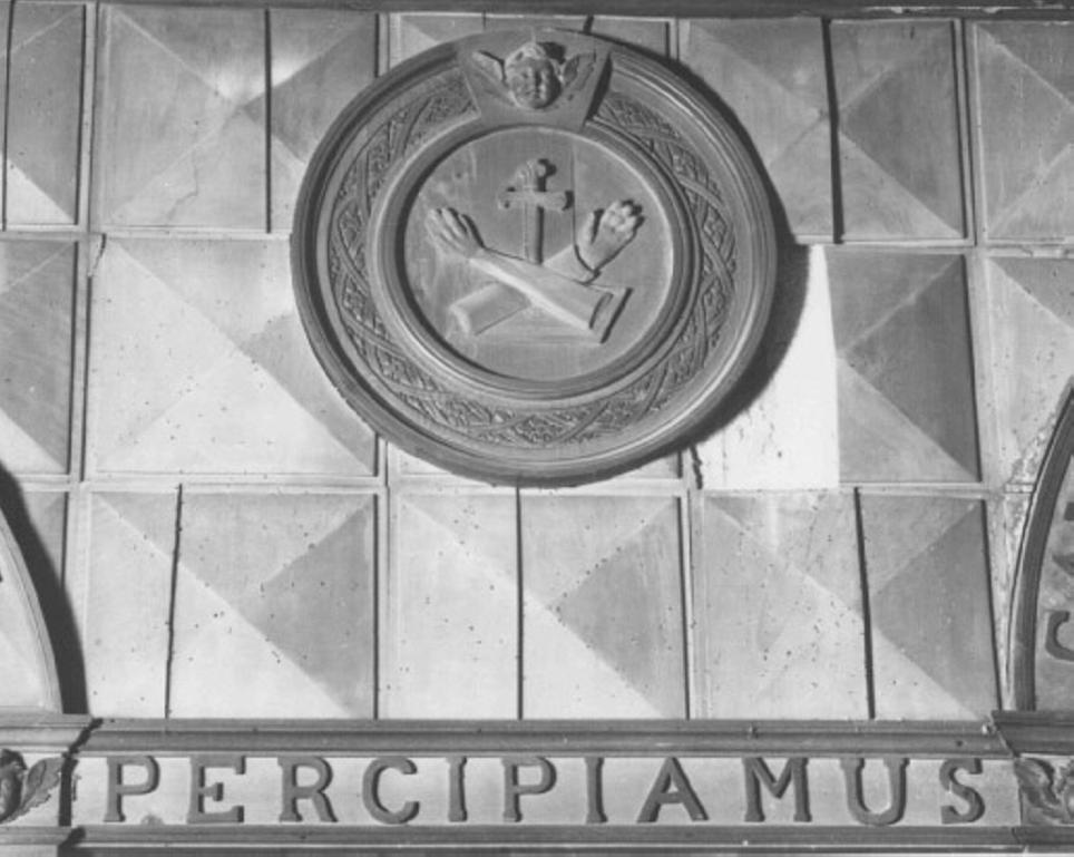 - STEMMI religioso - Emblema - Ordine francescano - Croce tra braccia incrociate