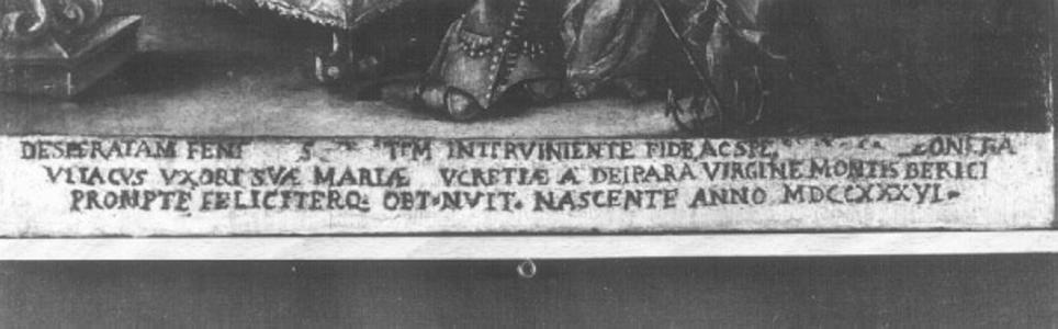 - ISCRIZIONI Sul fondo della scena - DESPERATUM FENI [...] S[...]TM INTERVINIENTE FIDE AC SPE.(O) HERA ULIACUS BERICI PROMPTE FELICITERQ.OBT.NUIT NASCENTE ANNO MDCCXXXVI - a pennello -