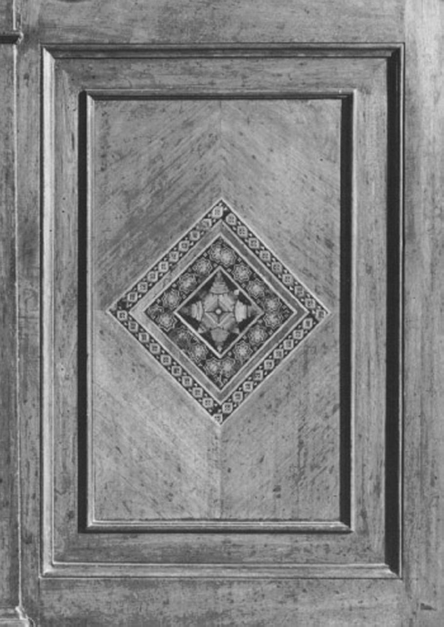 - NOTIZIE STORICO CRITICHE Nel 1824 viene demolito il coro - ideato da Lorenzo da Bologna - della chiesa primitiva per far luogo al campanile va perso il coro ligneo quattrocentesco i cui 24 schienali erano dovuti a P. A. Abbati non solo: vengono rovinati anche gli armadi della sacrestia. Commissionati nel 1504 ai falegnami Luca e Leonzio. Si recuperano pero' 6 tarsie dell'ab- bati piu' svariati pezzi degli armadi cinquecenteschi e sono questi che gia' il Berti nel 1833 vede riutilizzati nell'arredo. Seconso M. Caffi (1878) pero', delle tarsie pittoriche soli due sarebbero gia' inglobate in un armadio, mentre le altre due (il Caffi ne vede solo quattro), si troverebbero sopra dei banchi