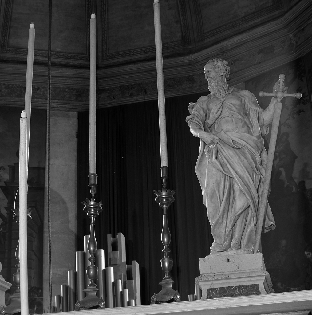 S. Paolo è rappresentato a figura intera nell'atto di reggere con la mano destra l'ampio mantello drappeggiato e con quella sinistra una monumentale spada che è il suo attributo. Il volto dall'espressione intensa guarda lontano verso destra