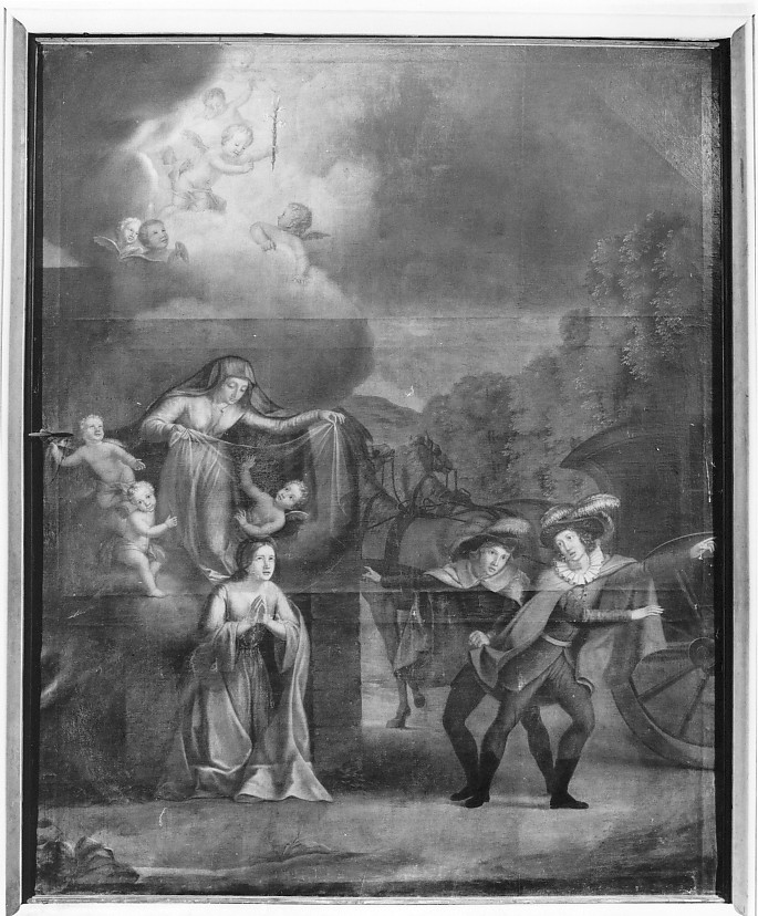 Dipinto raffigurante la Madonna che miracolosamente rende una giovane donna invisibile ai malfattori