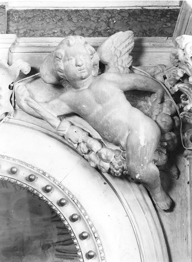 Rilievo posto sulla sommità della cornice della teca dell'altare, a destra, raffigurante un putto alato tra frutta