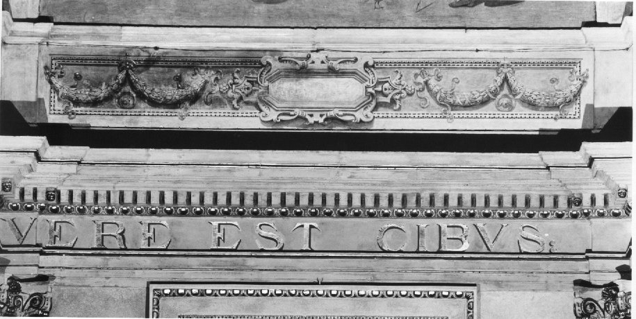 Decorazioni: motivo decorativo con festoni vegetali e cartiglio