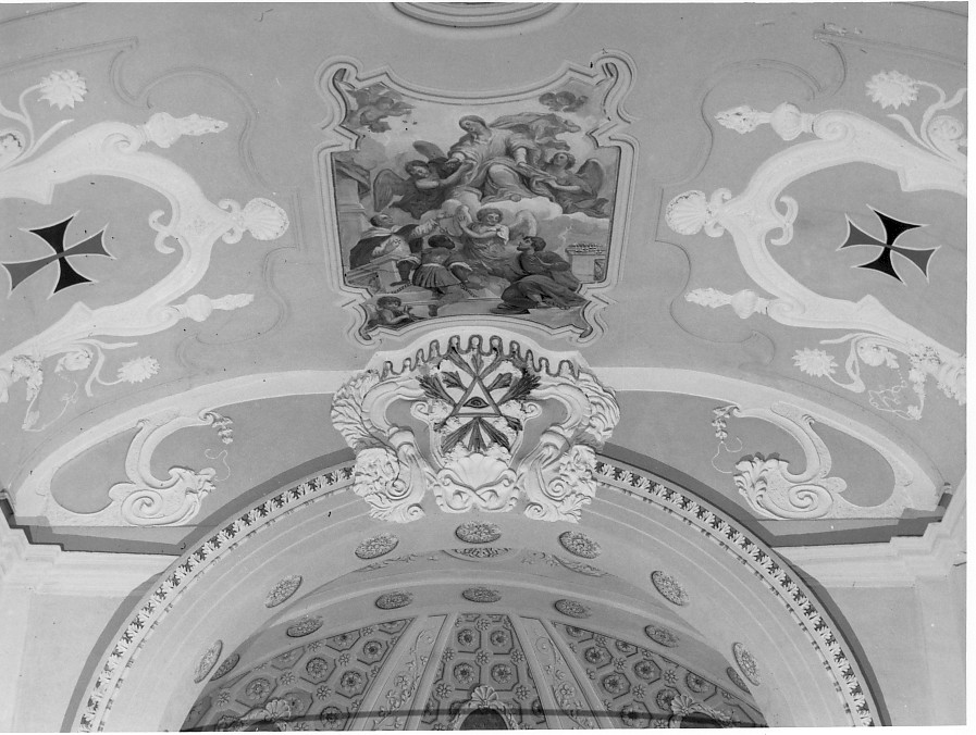 Decorazioni: motivi a volute. Simboli: (Trinità) triangolo raggiato con occhio
