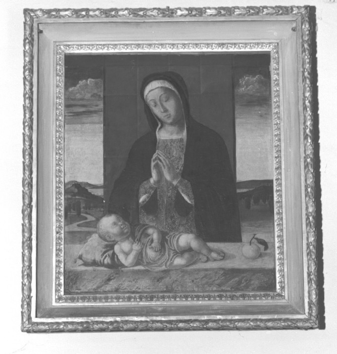 Aggiunta posteriore nella parte superiore della tavola. In alto a sinistra si legge una scritta posteriore: AVE MARIA. Altre scritte dipinte, ma illeggibili, ai lati sopra il piano dell'orizzonte