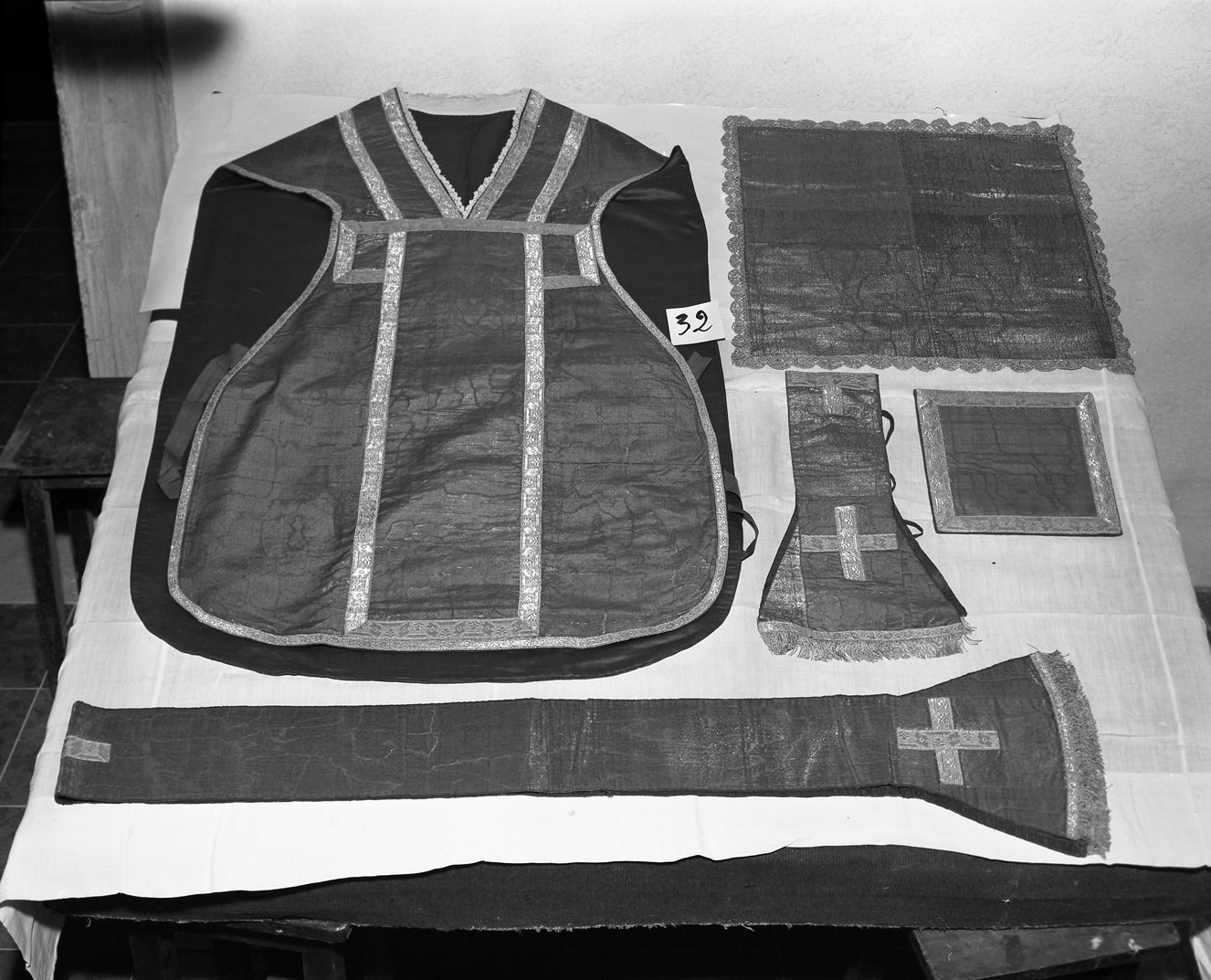 colore rosa scuro; gallone in oro; tessuto: gros de Tours marezzato laminato/ in seta oro