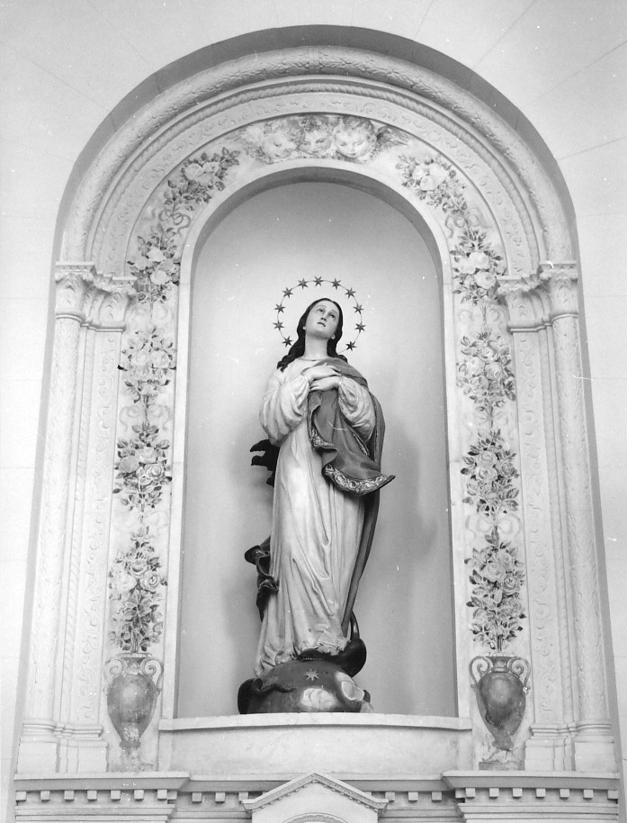 Personaggi: Maria Vergine. Simboli mariani: (peccato originale) serpente; (castità) crescente lunare