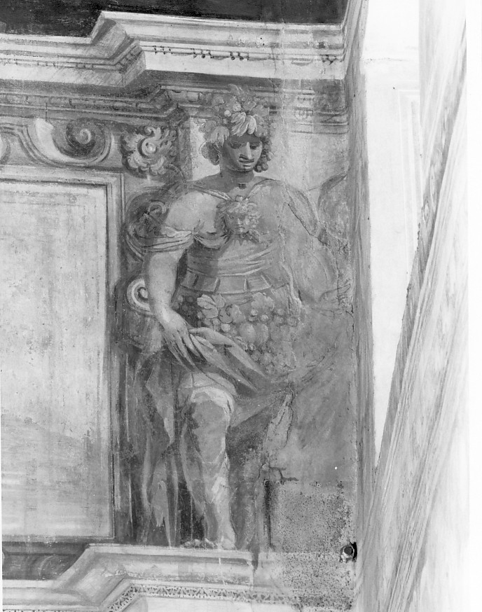 Allegorie-simboli: (agosto) figura maschile. Vegetali: pampini; uva