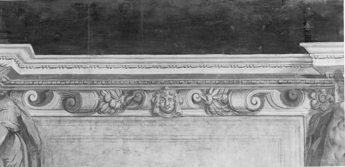 Decorazioni: elementi decorativi con riccioli;festoni; testina