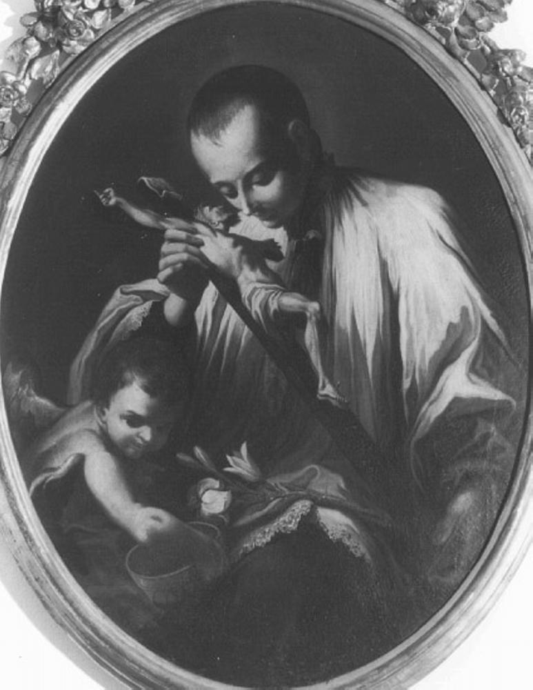 Personaggi: San Luigi Gonzaga. Figure: angioletto. Oggetti: crocifisso; corona. Simboli: (purezza) giglio