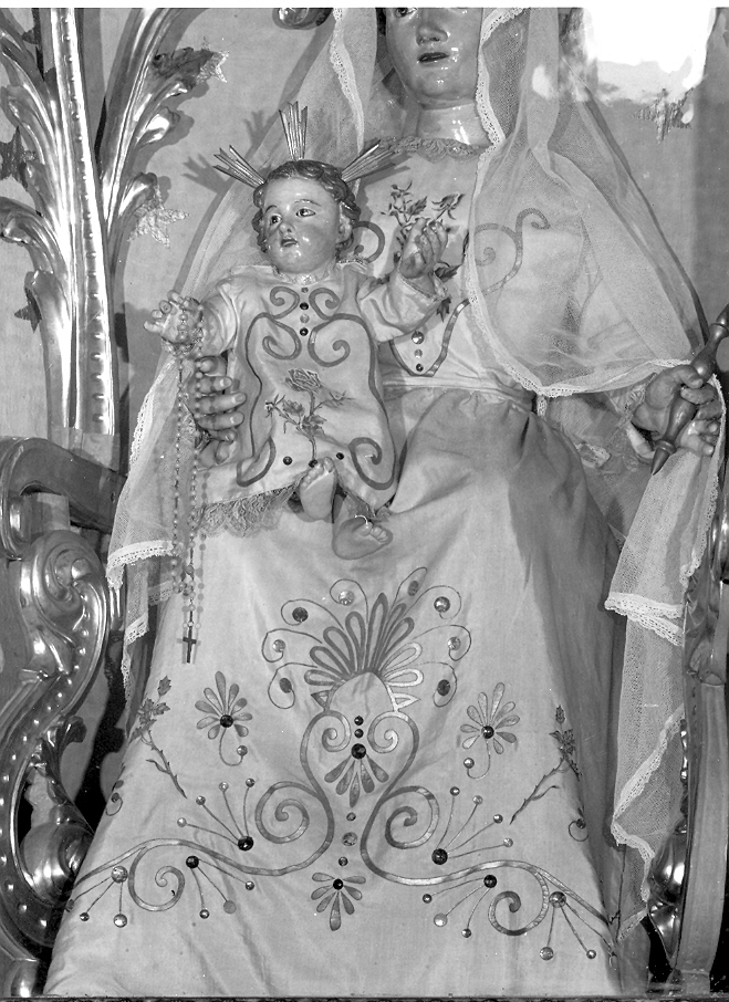 - NOTIZIE STORICO CRITICHE La veste si compone di due pezzi: uno per la statua della Madonna, l 'altro per quella del Bambino