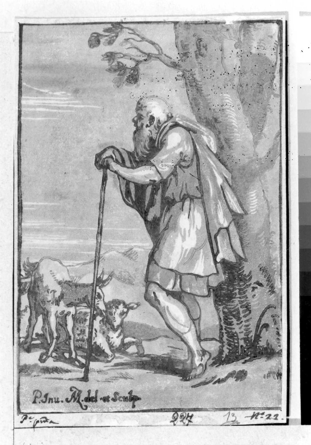 Figure maschili: pastore con mantello e bastone. Animali: capra; agnello. Paesaggi: paesaggio campestre; montagne. Vegetali: albero