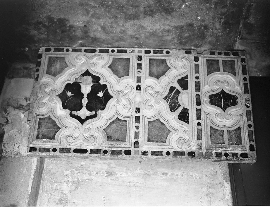 Paliotto d'altare con decorazioni a rilievo geometriche e a volute