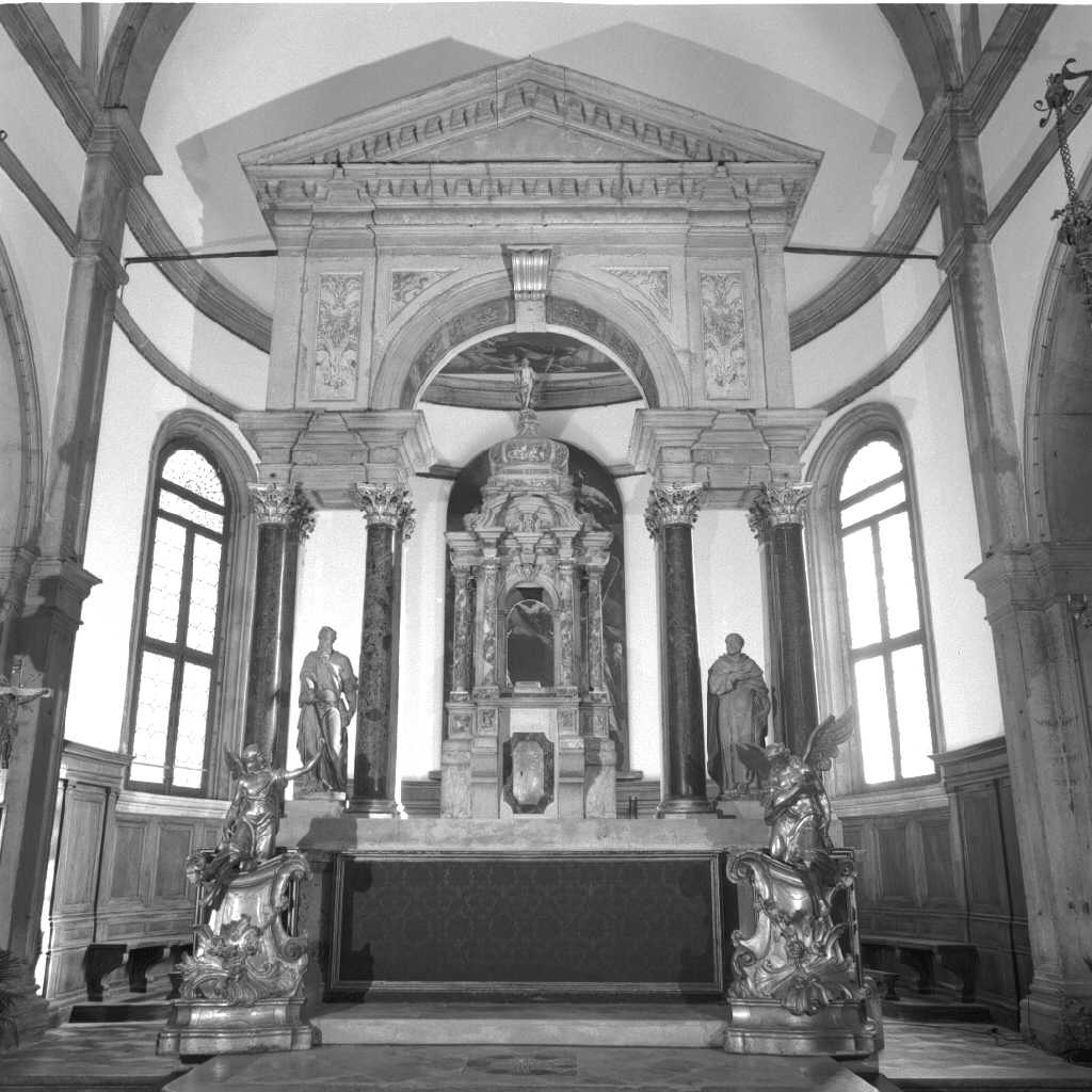 - NOTIZIE STORICO CRITICHE Si tratta di un rifacimento dell'altare, commissionato dalla Scuola del SS. Sacramento. Staccato dalla parete e avanzato verso il presbiterio nel 1921, quando furono anche aggiunte le quattro colonne in marmo verde. Originariamente, dietro il tabernacolo era posta una pala di Tintoretto, raffigurante l'Assunta, in seguito dispersa (Spadari M., La chiesa di S. Maria Formosa, tesi di laurea, 1986-87, prof. P. Rossi)