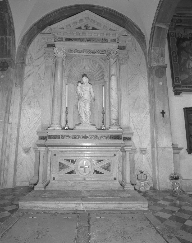 - NOTIZIE STORICO CRITICHE L'iscrizione incisa ai piedi delle lesene indica l'appartenenza dell'altare alla Confraternita di Maria Mater Domini. Secondo il Lorenzetti, l'altare fu costruito su modello di Jacopo Sansovino