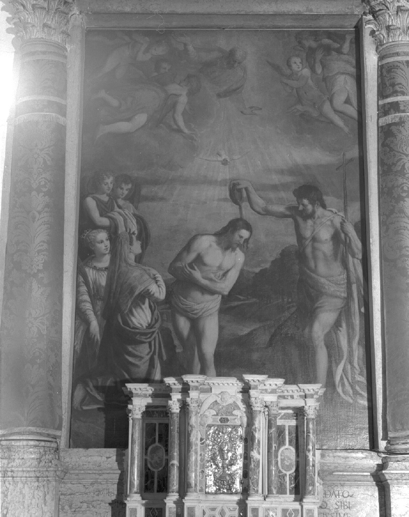 - NOTIZIE STORICO CRITICHE Si tratta di un'opera tarda del pittore manierista che lavorò a Roma e attorno agli anni 40 si trasferì a Venezia. La tela, dopo la soppressione napoleonica del 1806, venne esposta alle Gallerie dell'Accademia; solo nel 1927 fu restituita alla Chiesa e venne restaurata nel 1960 da B. Tiozzo