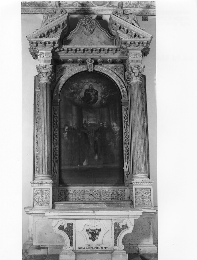 - ISCRIZIONI Sopra la base dell'altare - PIETAS CONFRATRUM FECIT - lettere capitali - A GRAFFITO -