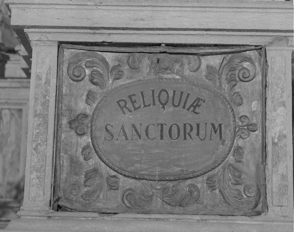 - ISCRIZIONI al centro - RELIQUAE SANCTORUM - lettere capitali - a pennello - latino