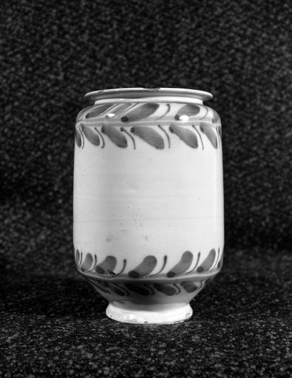 Doppia fascia di fogliette cuoriformi azzurre, in alto e in basso, su fondo bianco