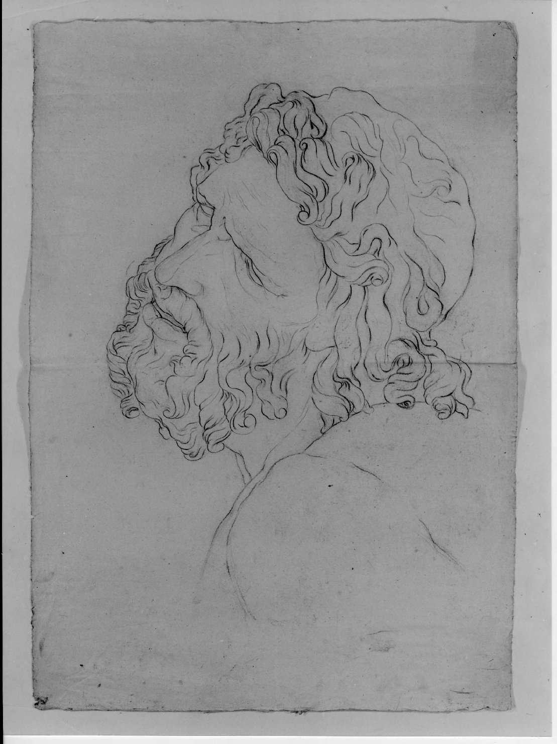 Disegno a matita nera con esercitazione accademica su testa virile barbuta. La carta reca una filigrana con le lettere GAF. Sul verso è presente un'altra figurazione (si veda la scheda 00281271A)