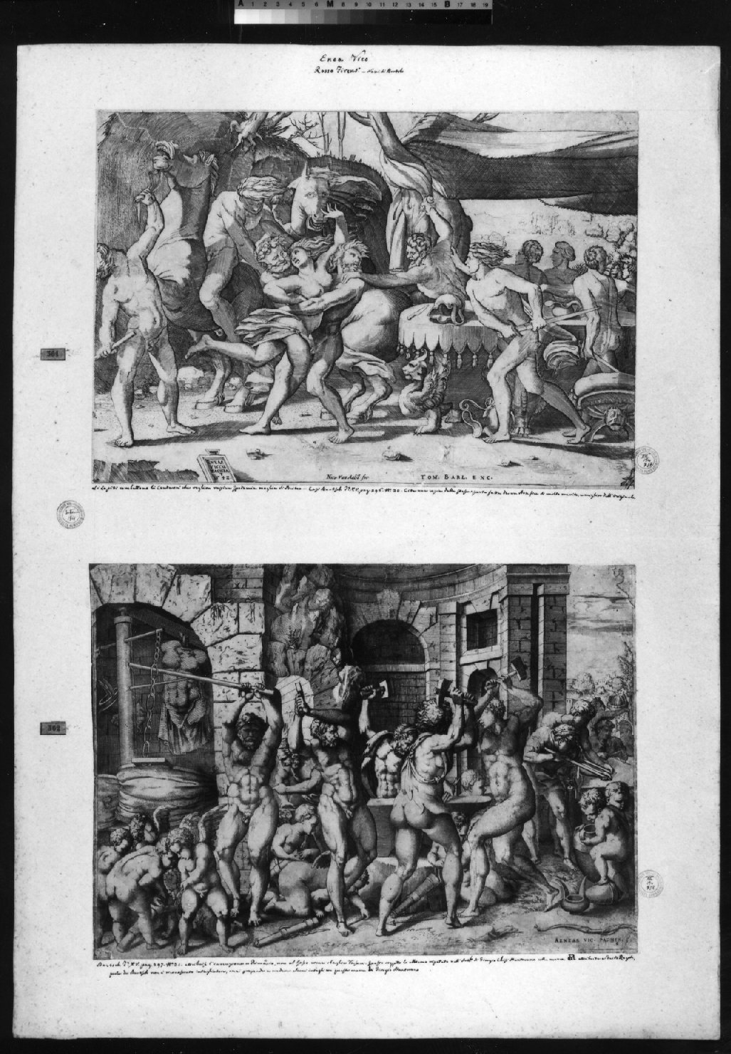 - NOTIZIE STORICO CRITICHE Sul cartone sono incollate le stampe nn. 737, 738. A sin. delle stampe è applicato un bollino rettangolare azzurro con impresso il vecchio numero d'inventario (361, 362) barrato a matita rossa